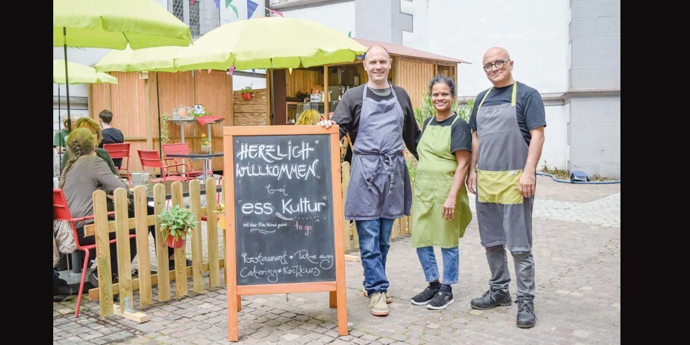 Neben der Kirche St. Johann in Schaffhausen steht neu ein kleines Holzhüttchen. «essKultur» – Name und Konzept in einem des dort seit Kurzem beherbergten Restaurants. Normalerweise sind die Betreiber:innen an der Stadthausgasse 18 einquartiert. Aufgrund der dort einhergehenden Grossbaustelle sind sie noch bis zum 2. September an der Vordergasse tätig. Ihre Menus nehmen einen mit in die Türkei, nach Sri Lanka, Syrien oder in den Iran. Gekocht wird im Restaurant primär von Menschen, welche in die Schweiz migriert sind. «Wir bieten diesen Personen hier eine erste Anstellungsmöglichkeit», erklärt Leiter der «essKultur», Mirko Sauter. «Währenddem sie uns ihre Kultur, durch das Kochen von typischen Gerichten aus ihrer Heimat näherbringen.» In erster Linie geht es den Betreiber:innen um das Erschaffen von integrativen Arbeitsplätzen. Des Weiteren wollen sie möglichst immer Lebensmittelanbieter aus der Region berücksichtigen. So stammen zum Beispiel 90 Prozent ihrer verwendeten Produkte für den Feierabend-Apéro aus einem Umkreis von 20 Kilometern.