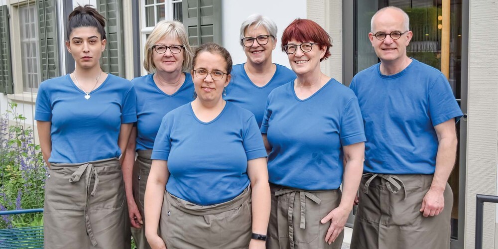 Schnell und frisch – Roland Bosshards Beschreibung für ein perfektes Mittagessen. Seit 2015 arbeitet er als Koch in der «Hopfenstube» auf dem Herrenacker in Schaffhausen. 2017 übernahm er die Pacht. Bei ihm bekommt man herzhafte Gerichte, teils auch mit thailändischen Komponenten, über Mittag aufgetischt. Selbst ist er kein grosser Fan des Mittagsservices. Dieser sei nämlich kein Einnahmegarant. «Es ist nie sicher, ob am Schluss tatsächlich genügend Leute auftauchen und sich der Aufwand lohnt», so der Beizer. «Am Abend ist das weniger der Fall.» Zeit spiele ebenfalls eine wichtige Rolle über Mittag. «Der Grossteil meiner Kundschaft muss danach gleich wieder zur Arbeit», sagt Roland Bosshard. «Da darf das Essen nicht erst um 12.45 Uhr auf dem Tisch stehen.» Es gilt abzuschätzen, welche Besucher:innen etwas mehr Zeit zur Verfügung haben. «Zum Glück kenne ich meine Gäste alle sehr gut.»