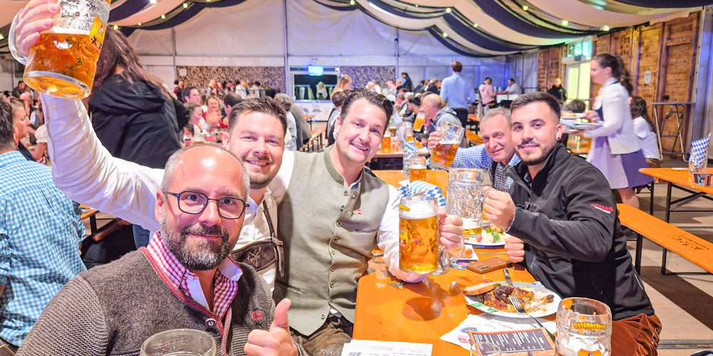 Hendl, Haxn und Masse gehen wie frische Semmel über die Theke. Kaum mehr jemand sitzt, die meisten stehen auf den Bänken, klatschen, singen und tanzen. Eine grosse Polonaise, Stimmungslieder und fröhlich feiernde Menschen prägen den Abend.