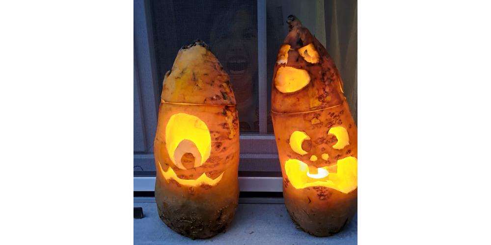 Diese lustigen Fratzen hat Sariah, 8 Jahre, in die Rüben geschnitzt. Bild: zVg.2 / 3 -