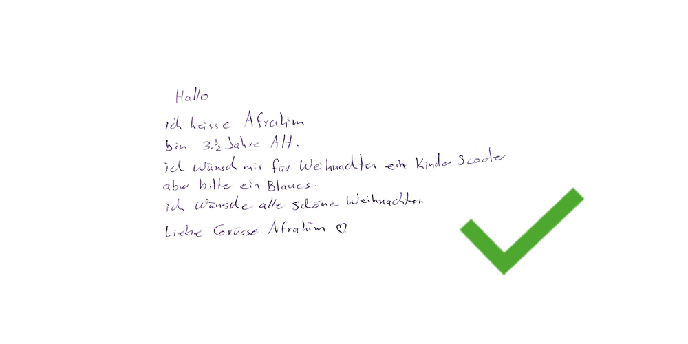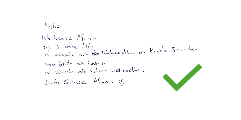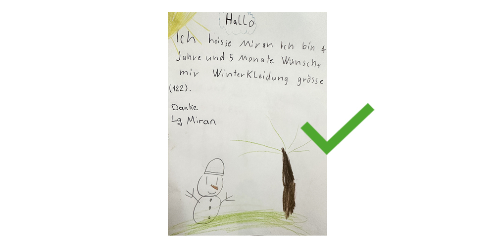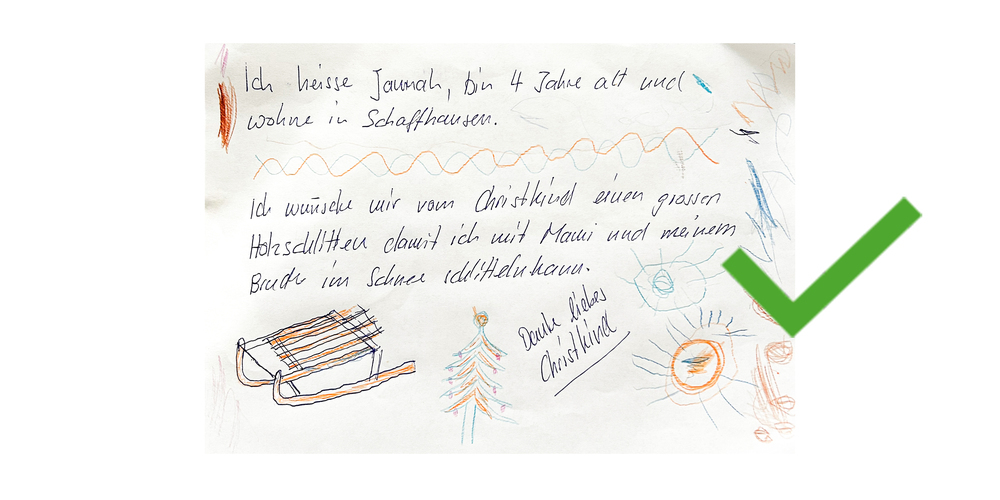 Auf Schaffhausen24 werden laufend weitere Wunschzettel veröffentlicht. Die Wunschzettel mit dem grünen Haken wurden bereits vergeben. Derzeit sind alle Wunschzettel bereits vergeben, es sind jedoch mehr unterwegs.