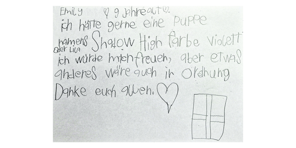 Ab dem 25. November publiziert der «Bock» weitere Wunschzettel. Diese werden fortlaufend auf schaffhausen24.ch sowie auf unserem Instagram-Kanal bock_schaffhausen24 veröffentlicht.