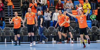 Grund zum Jubeln: Mit dem gestrigen 31:30 (17:16) schliessen die Kadetten Schaffhausen die Best-of-Five Serie des Playoff-Viertelfinals gegen den BSV Bern erfolgreich mit 3:1 ab.
